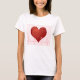 Un coeur rouge battant qui montre la fréquence cardiaque. Ce design semble vraiment efficace sur ce T-shirt féminin