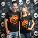 This design is the image of a skull head, from which burning flames emanate in orange tones that simulate the fire of hell itself. The word "Hell" appears in orange letters, also looking scary, just below the image, adding a touch of mystery and terror. But it's in the back where the real narrative comes to life: the phrase "On the night of the dead, the flames of eternity burn in our souls", evoking the spooky atmosphere of Halloween while suggesting a deep link to the afterlife. This design will immerse you in the magic and mystery of the celebration of the dead. Perfect for an unforgettable Halloween night!