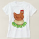 Une poule assise sur un oeuf d'or avec de l'argent sous elle. Ce design semble vraiment efficace sur ce T-shirt féminin