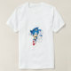 Le design présente Sonic the Hedgehog, le personnage emblématique de la série de jeux vidéo populaire créée par Sega. Dans cette image, Sonic est représenté dans sa forme classique avec une fourrure bleue vibrante, un sourire confiant, et une pose dynamique qui transmet mouvement et énergie. Il est montré avec sa signature des chaussures rouges et blanches qui ont un design simpliste et caricaturale, qui sont soulignés dans cette représentation comme il semble être au milieu d'un rapide tiret. Créant un sens de la vitesse, il y a des lignes de mouvement derrière lui qui s'enroulent en forme de coeur stylisé, ajoutant un élément ludique et créatif à la conception. La pose de Sonic est celle de l'action et de l'état de préparation ; son bras gauche est tendu vers l'avant, la main ouverte comme si elle tenait la main ou se préparait à attraper quelque chose,