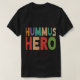 Un design ludique et coloré de t-shirts avec le texte "Hummus Hero" en caractères gras et caricaturaux. Le design est parfait pour les amateurs de houmous et tous ceux qui aiment rire.