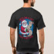 A fun, festive, and colorful cartoon illustration of Santa Claus happily holding a long, rolled-up "Naughty/Nice List." The background is a vibrant blue with white snowflakes and evergreen trees, enclosed by a circular border. Bold, red and white text prominently features the phrase: "HE'S ON A LIST AND IT'S NOT MINE." This design has a distinct, appealing retro or vintage feel, perfect for holiday apparel or greeting cards.