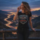 Highways & High Notes blends open-road freedom with pure rock energy. Built around a bold chrome-inspired shield emblem, the design features a stylized highway forming a subtle guitar silhouette — a tribute to nights spent driving with the music loud and the windows down.