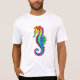 Artistiquement dessiné, lumineux, arc-en-ciel, cheval de mer polygonale sur arrière - plan blanc. Un tatouage brillant.