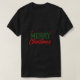 Le design du t-shirt comporte le texte "Joyeux Noël" dans des couleurs vives et joyeuses, imprimé sur un T-shirt blanc avec un effet vintage et défraîchi. Le design est festif et festif, parfait pour la saison de Noël.