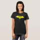 Vol jaune de ptérodactyle avec les ailes répandues à être une parodie de super héros sur un T-shirt noir.