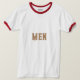 Homme Texte ou Nom ou Mot avec Brown clair Texte et Le Style est Basique T-Shirt Ringer, Type de Couleur est Blanc/Rouge et Taille est Adulte L.