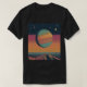 Ce design de t-shirt présente une scène captivante d'un paysage d'un autre monde, mêlant des éléments de science-fiction et de nature sereine. Au premier plan, une série de montagnes stylisées, dans des tons chauds et terreux de rouge et d'orange, donne un sentiment de profondeur et de grandeur. Au-dessus des montagnes, un vaste océan s'étend à l'horizon, fusionnant harmonieusement avec le ciel ensoleillé et vibrant. Le coucher du soleil affiche un étonnant dégradé de couleurs, de l'orange profond au rose et au violet, passant dans le ciel nocturne. Dominant le ciel, une grande planète rayée aux teintes de vert, d'orange et de turquoise, rappelle un géant du gaz comme Jupiter, mais avec sa propre touche unique. Autour de la planète, des étoiles scintillantes et une lune plus petite ajoutent à l'atmosphère cosmique, créant un sentiment d'émerveillement et des possibilités infinies. Ce design est parfait pour les amateurs d'espace et tous ceux qui apprécient la beauté de l'univers.