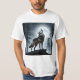 A majestic wolf silhouette howling at a glowing full moon with a misty forest in the background