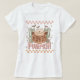 T-shirt western féminin Halloween rétro avec texte citrouille, citrouille et éléments à damiers Howdy dans des couleurs de confort pastel. - Kate Eden Art