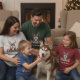 "This striking illustration features a powerful portrait of a Siberian Husky with its characteristic thick coat and intelligent, mesmerizing eyes. The dog is given a whimsical holiday touch with reindeer antlers adorned with small golden ornaments. Two beautifully wrapped Christmas presents with red ribbons sit prominently on either side. This high-quality graphic is ideal for personalized holiday gifts for Husky owners, winter apparel, Christmas cards, ornaments, or any product celebrating this majestic working breed."