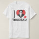 Je Coeur Trudeau. J'Aime Justin Trudeau. Avec une feuille d'érable canadienne rouge. Premier ministre libéral du Canada. Le visage de Justin fait comme illustration graphique et finit dans un regard grinçant et affligé.