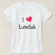 "I Love Lutefisk" avec un beau design de coeur rose et rouge. En plus de changer le mot définissant ce que vous aimez, sur beaucoup de produits vous pouvez changer le texte et la couleur arrière - plan aussi bien.
