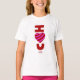Vous pouvez admirer mon dessin de la Saint-Valentin et le dessin romantique que j'appelle, "I Love You", d'un coeur rayé rouge et rose, ajouté à ce t-shirt blanc de base pour filles.