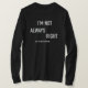 T-shirt I m Not Always Right But I m Never Wrong