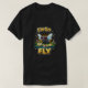 A cheerful cartoon fly with oversized red eyes stands proudly on a lily pad beneath a sparkling night sky, celebrating humor, confidence, and playful charm.