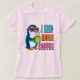 A fun and colorful cartoon penguin wearing sunglasses and holding a hot cup of coffee with the bold phrase “I Need More Coffee.”