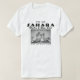 T-shirt blanc avec dessin d'un groupe musical africain avec "LE GRAND SAHARA RHYTHM & BLUES BAND TIMBUKTU, MALI PRÈS DU NIGER DE LA RIVIÈRE", avec I-BONE LTD. Il y a des groupes de musique dans et autour du désert du Sahara en Afrique du Nord qui jouent leur propre style unique de musique rythmique et blues. Cette chemise leur rend hommage.