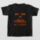 "Ici, il y a des sorcières" - vieil avertissement...Un four de sorcières fantomatiques, squelettiques d'Halloween.
