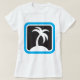 Une icône de palmier avec un arrière - plan noir et un cadre bleu. Ce design semble vraiment efficace sur ce T-shirt féminin