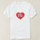 Ce t-shirt est doté d'un coeur rouge vif contenant les lettres coques supérieures, blanches et audacieuses IL, l'abréviation officielle de l'Illinois, l'état des Prairies.