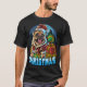 Illustration graphique d'un carlin de Noël avec des cadeaux dans la forêt nocturne.