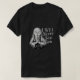 The T-shirt design could be a black and white print on a dark-colored shirt, with the nun's face and hands detailed in white to create a striking contrast. The text could be in a distressed font to give it a vintage, haunted feel.