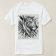 Un imprimé tigre abstrait aux formes géométriques dans les tons noir et blanc, placement central de la poitrine pour un t-shirt homme. Le design présente des rayures dynamiques et des éléments géométriques fragmentés inspirés des motifs du tigre, mêlant lignes pointues, courbes et formes abstraites pour créer un look pointu et moderne. L'impression est minimaliste mais puissante, se concentrant sur les contrastes du noir et du blanc avec une interprétation artistique de l'énergie sauvage d'un tigre.
