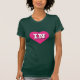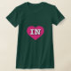 Ce t-shirt est doté d'un coeur rose vif et chaud contenant les lettres coques en haut, blanc et audacieuses IN, l'abréviation officielle de Indiana, l'état hoosier.