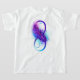 Infinity symbole with a beautiful feather painted in purple and blue bright colors on white background