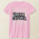 Ce t-shirt présente un design typographique des mots Dream Catcher en lettres holographiques irisées. Il y a un design stylisé de logo texte avec les mots DREAM CATCHER en lettres holographiques irisées avec un contour noir. Le texte a un effet brillant et tridimensionnel. Chaque lettre passe à travers un spectre de couleurs, créant une apparence arc-en-ciel avec des effets irisés qui se déplacent entre rose, bleu, vert et jaune. Le texte est centré dans le cadre et a une qualité brillante et magique avec de petits éclats blancs comme des étoiles tout au long de l'effet holographique. Le design a une qualité mignonne, ludique, capricieuse qui convient à une marque ou un nom d'entreprise. Le t-shirt est un t-shirt de style typographie Art. Le t-shirt est un collier rose Bella+Canvas féminin mince Tee.
