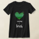Un T-shirt noir de femmes assez chics féminines impressionnantes comportant un coeur girly d'aquarelle d'éclaboussure de VERT de bonbon assez qui a les mots "FONCTIONNER SUR L'IRLANDAIS" sous lui.
