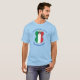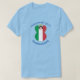 Short sleeve men's T-shirt for Hanukkah shows an angel dressed in the Italian flag. Above, in blue letters, add a holiday or occasion and a year in blue letters. Below, also in blue letters, is a place for a name. Great for holiday gift.