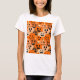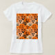 Ce t-shirt pour femmes a un design de jack-o-lanternes avec des visages différents se répétant dans chaque trimestre.