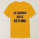 Un texte norvégien : par exemple klødde, så par exemple kilte meg, qui peut être traduit par : J'ai eu une démangeaison, donc je me chatouille moi-même. Ce T-shirt orange peut être customisé pour vous donner un look unique. Vous pouvez customiser le type de polices, la couleur des polices, la taille, modifier le texte, supprimer et ajouter du texte, ajouter une photo et plus encore.