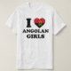 Embrassez l'esprit de l'Angola avec ce t-shirt "I Love Angolan Girls" audacieux. Doté d'un coeur vibrant avec le drapeau angolais, il célèbre la beauté et l'attrait des femmes angolaises. Ce tee-shirt est parfait pour montrer de la fierté pour la riche culture angolaise ou comme un cadeau unique pour toute personne enchantée par le continent africain diversifié et captivant.