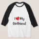 Un T-shirt "I Love My Girlfriend" bloquant avec un coeur rouge vif.