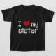 Le produit indique que "j'aime ma soeur" dans une police blanche, grande sur les chemises noires ! La police lui donne une sensation grunge.