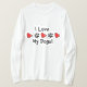 Le sweatshirt blanc avec indiquant "moi aime mes chiens"