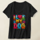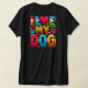 Le design des T-shirts comporte l'expression "I Love My Dog" en typographie audacieuse et ludique. Le mot "Amour" est représenté par un grand coeur rouge, ajoutant une pop de couleur vibrante. Autour du texte sont de mignons, des empreintes de pattes et de petites illustrations liées aux chiens comme des os et un collier pour chien. Le design est simple, chaleureux et parfait pour exprimer l'affection d'un propriétaire de chien dans un style amusant et décontracté.