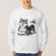 水墨画タッチで描かれた、くつろぐ子犬のロングスリーブTシャツ。
