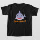 Un mignon T-shirt sur le thème du requin, avec un requin bleu souriant avec "mâchoire" en-dessous de la bande dessinée orange en lettrage.