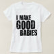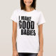 Faites connaître à tout le monde votre talent spécial avec ce t-shirt "Je fais de bons bébés" drôle et en détresse. Que vous soyez enceinte ou que vous ayez déjà des enfants, faites savoir au monde que vous faites de bons bébés. Le design parfait pour n'importe quelle bonne maman ou papa, ou juste quelqu'un qui veut une ligne de ramassage spirituelle. Seulement des Tee - shirts de Lil' Squirt.