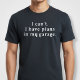 T-shirt Je ne peux pas. J'ai des plans dans mon garage.