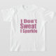 Cette chemise est parfaite pour cette fille active (ou garçon qui aime le rose et la parties scintillant) qui veut s'assurer que tout le monde sait qu'ils ne transpirent pas et qu'ils brillent. C'est un graphique pour ne pas changer les mots. Comment peut-on changer la couleur de la chemise mais soyez prudent car changer la couleur de l'arrière - plan va modifier la couleur des mots. Ce n'est pas une vraie parties scintillant qui lui ressemble. Fait un grand cadeau.