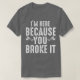 T-shirt Je suis ici parce que vous l'avez cassé drôle méca
