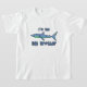 Ce redoutable grand requin blanc (qui se trouve être bleu et vert) n'a pas l'air si effrayant après tout. Il nage au centre de notre plaisir Je suis le T-shirt BIG Brother. Le texte est patché et cousu comme le poisson de dessin animé.