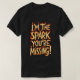 Illustration dessinée à la main avec le texte I'm the Spark You're Missing! dans une police orange et enflammée. Le texte est stylisé avec des flammes autour de chaque lettre.