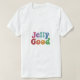Ce magnifique design de t-shirt comporte l'expression "Jelly Good" dans un affichage vibrant et multicolore. Chaque lettre peut être une teinte ludique différente, rappelant les différentes saveurs de gelée comme le raisin, la fraise et l'orange. La police pourrait être mousseuse et légèrement gonflée, reflétant la nature hideux de la gelée. Ce design est parfait pour diffuser une ambiance joyeuse et douce où que vous alliez.