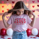 Let everyone know that Jesus is her Valentine in this adorable tee! Varsity-style letters in sweet shades of pink is the stylish way to show off her faith this Valentine's Day.